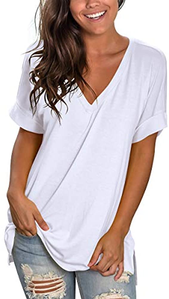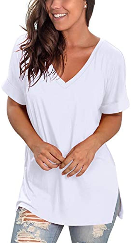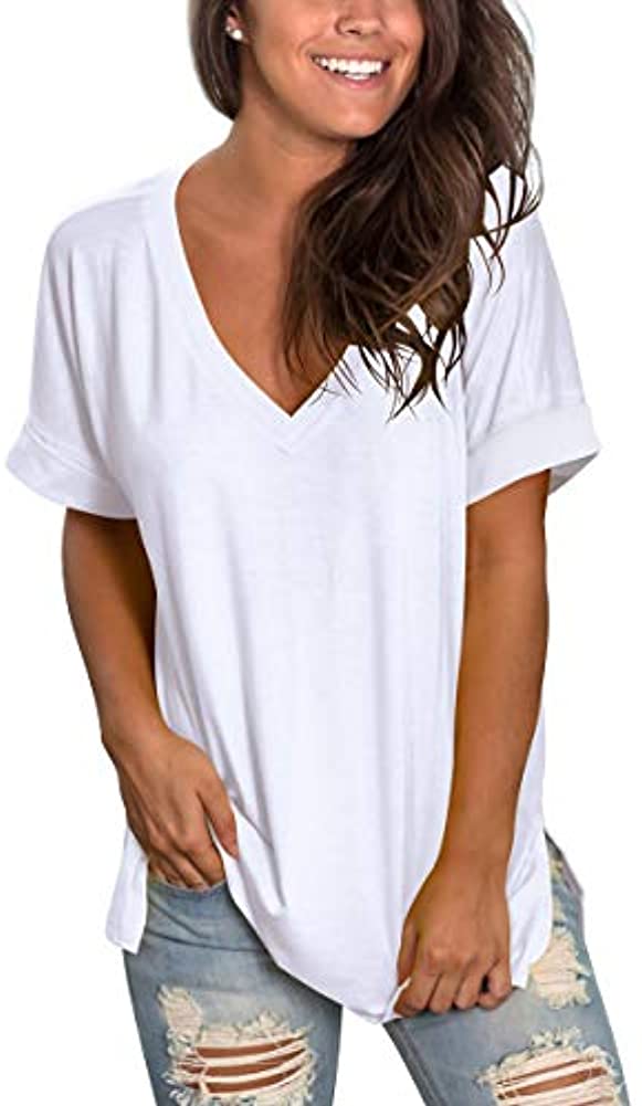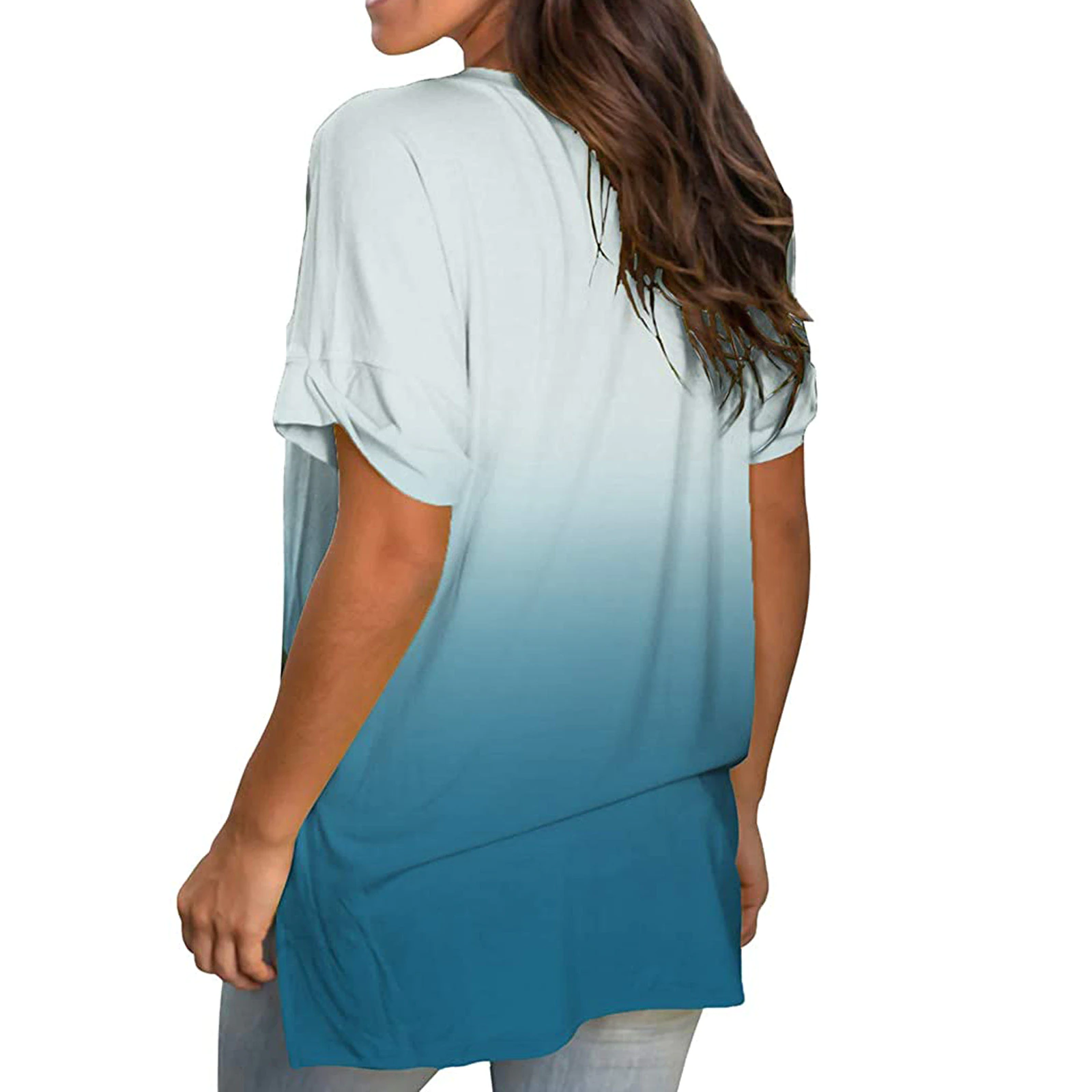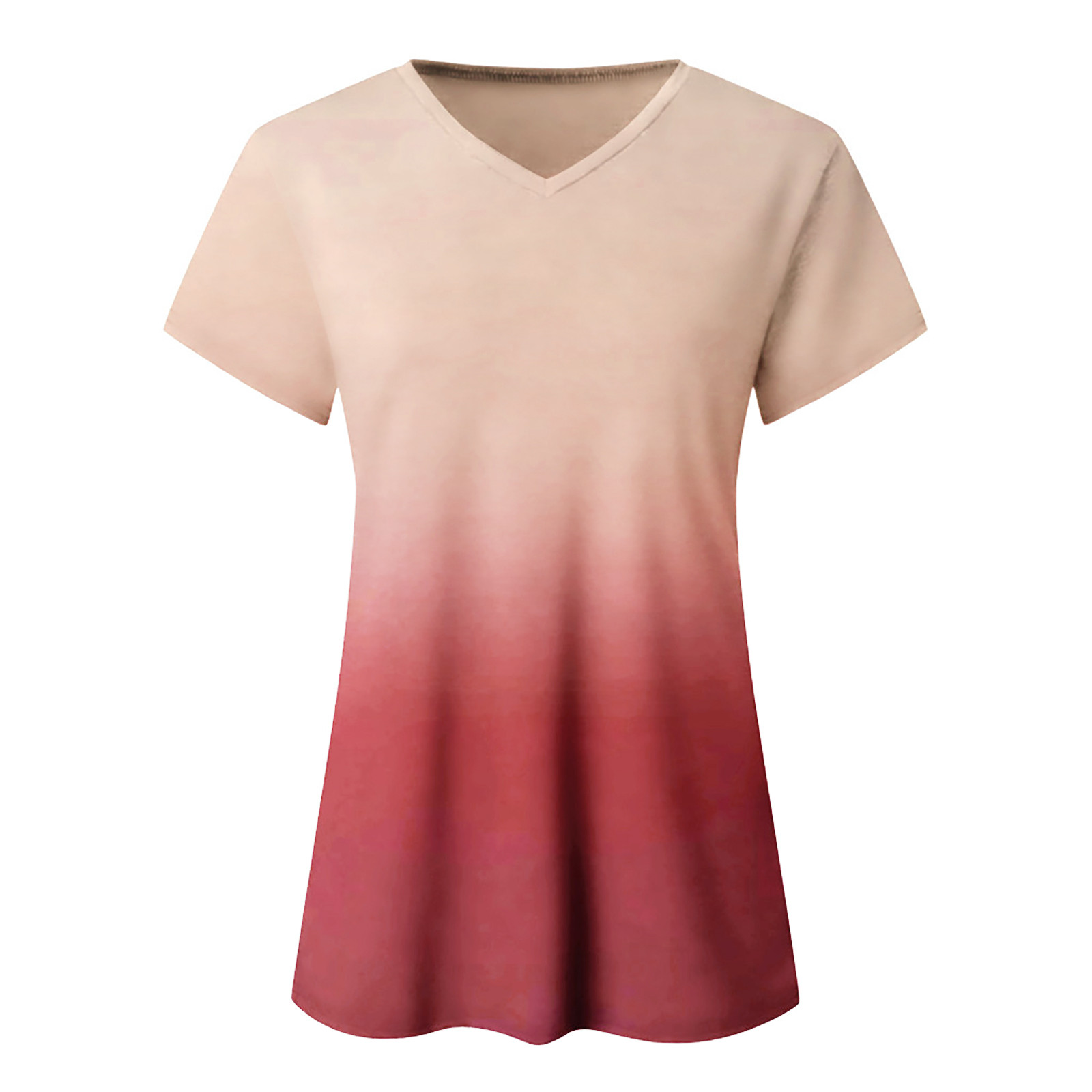 Women's Fashion Casual Gradient V-neck Short Sleeve Loose T-shirt Tops