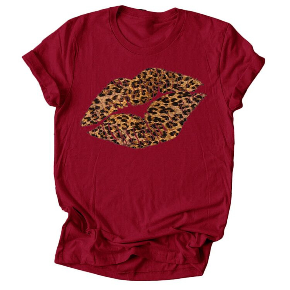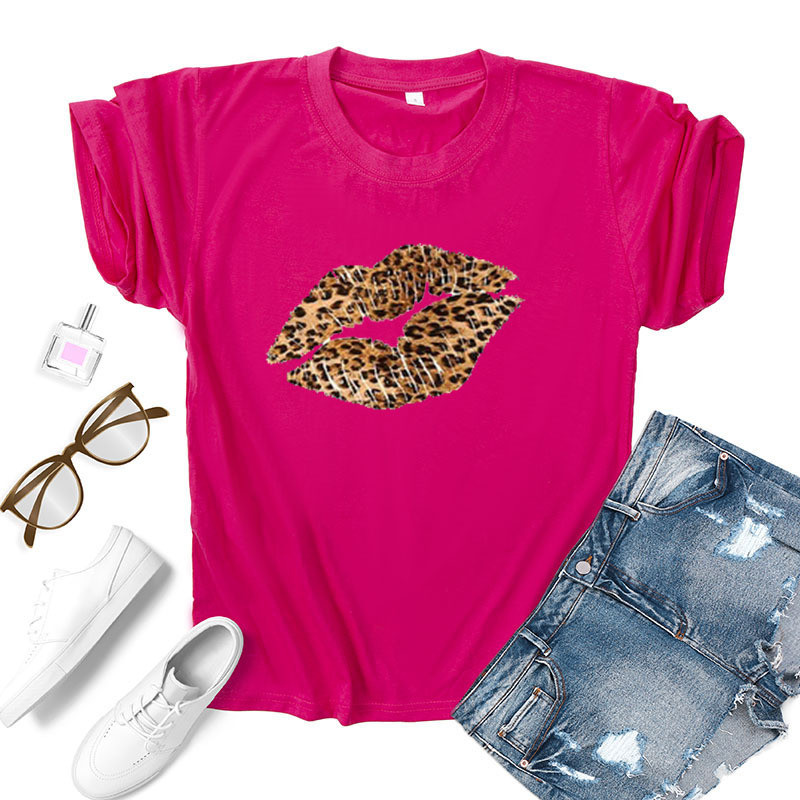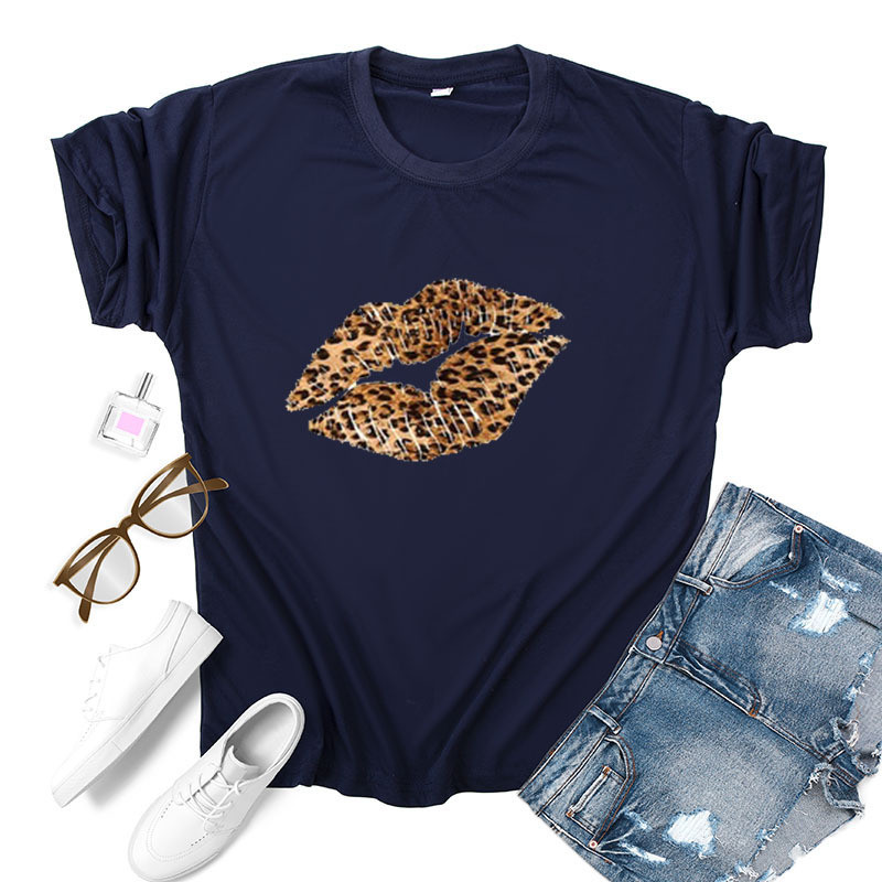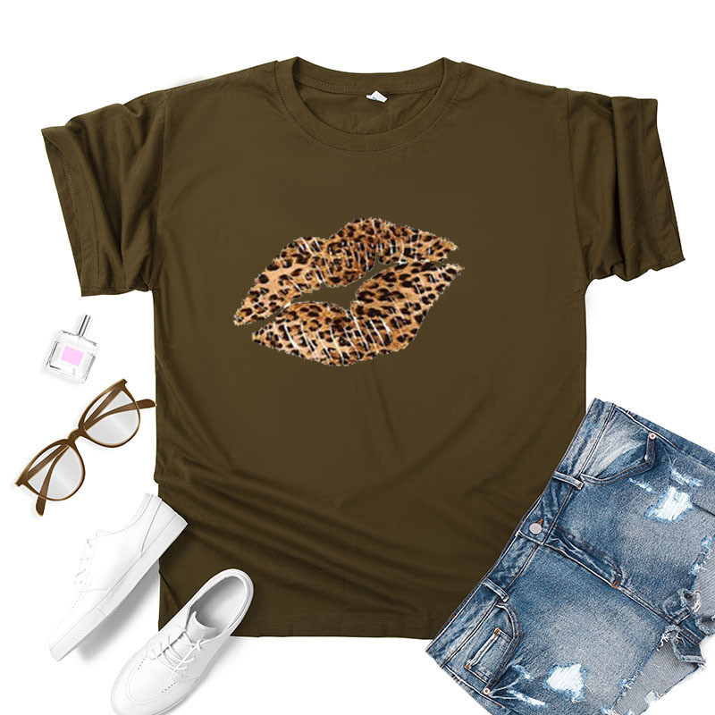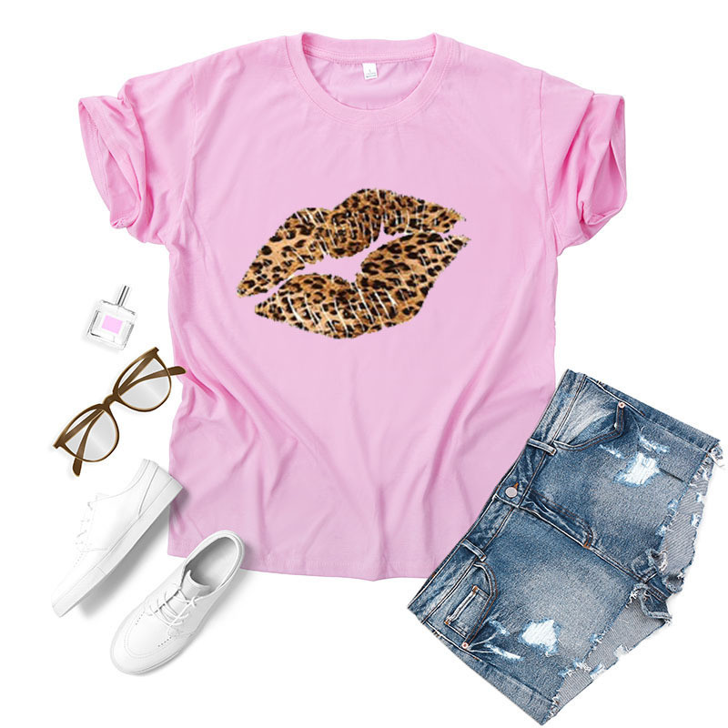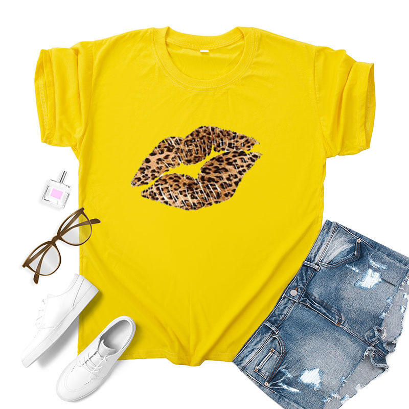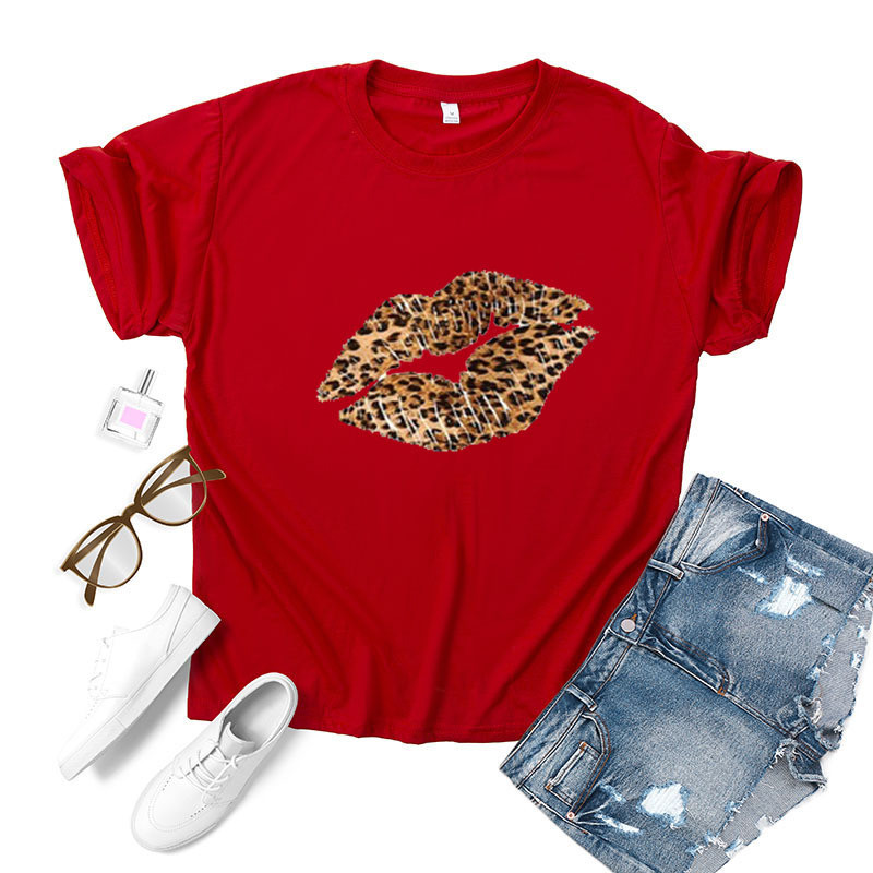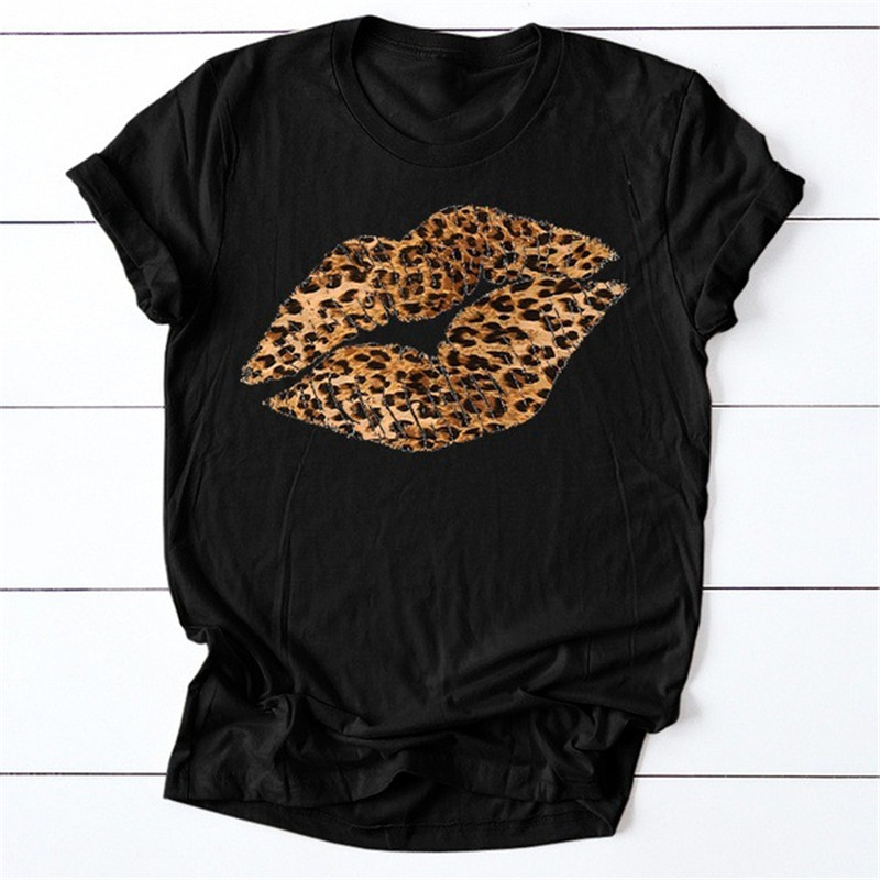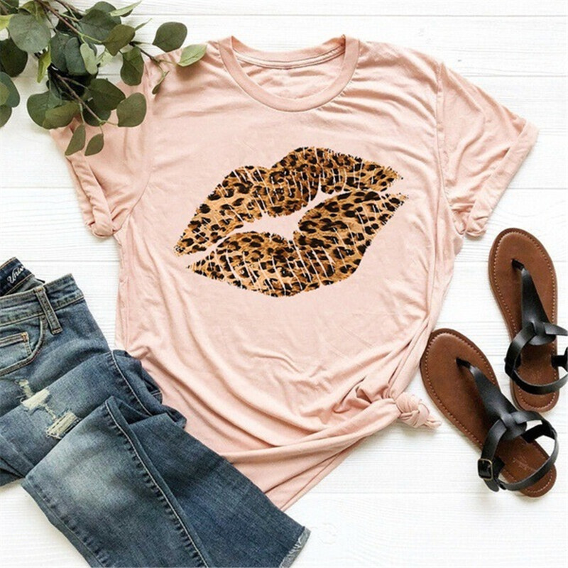 Leopard Lip Print Women T Shirt Short Sleeve O Neck Loose Women Tshirt Ladies Fashion Tee Shirt Tops Clothes Camisetas Mujer