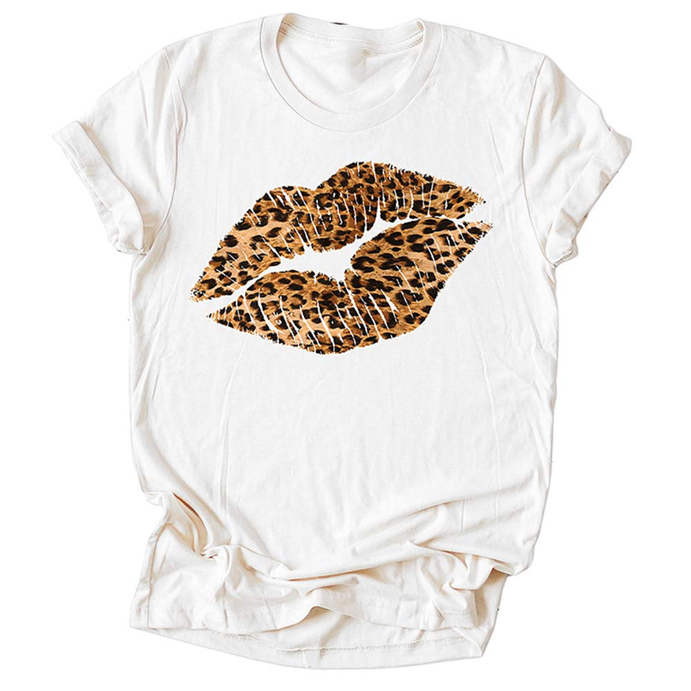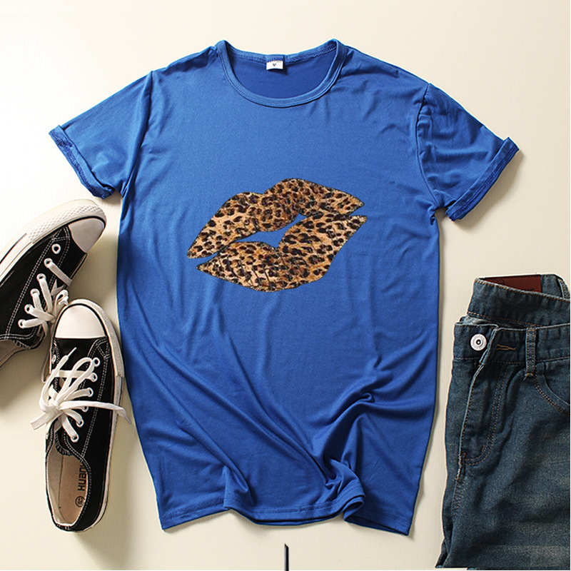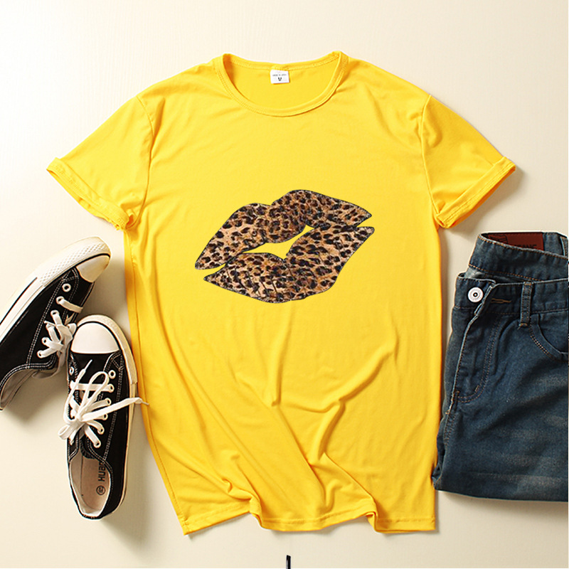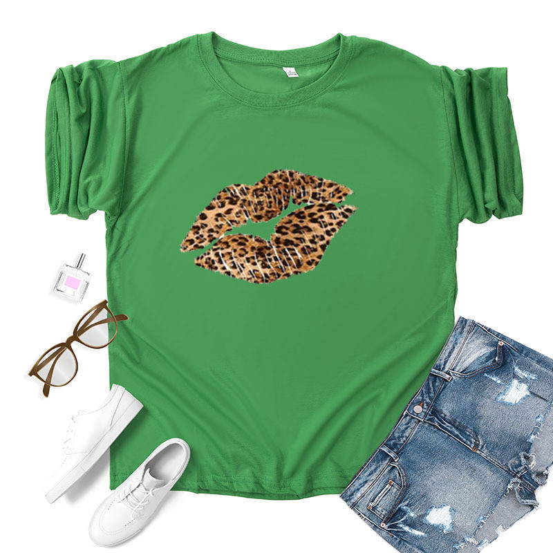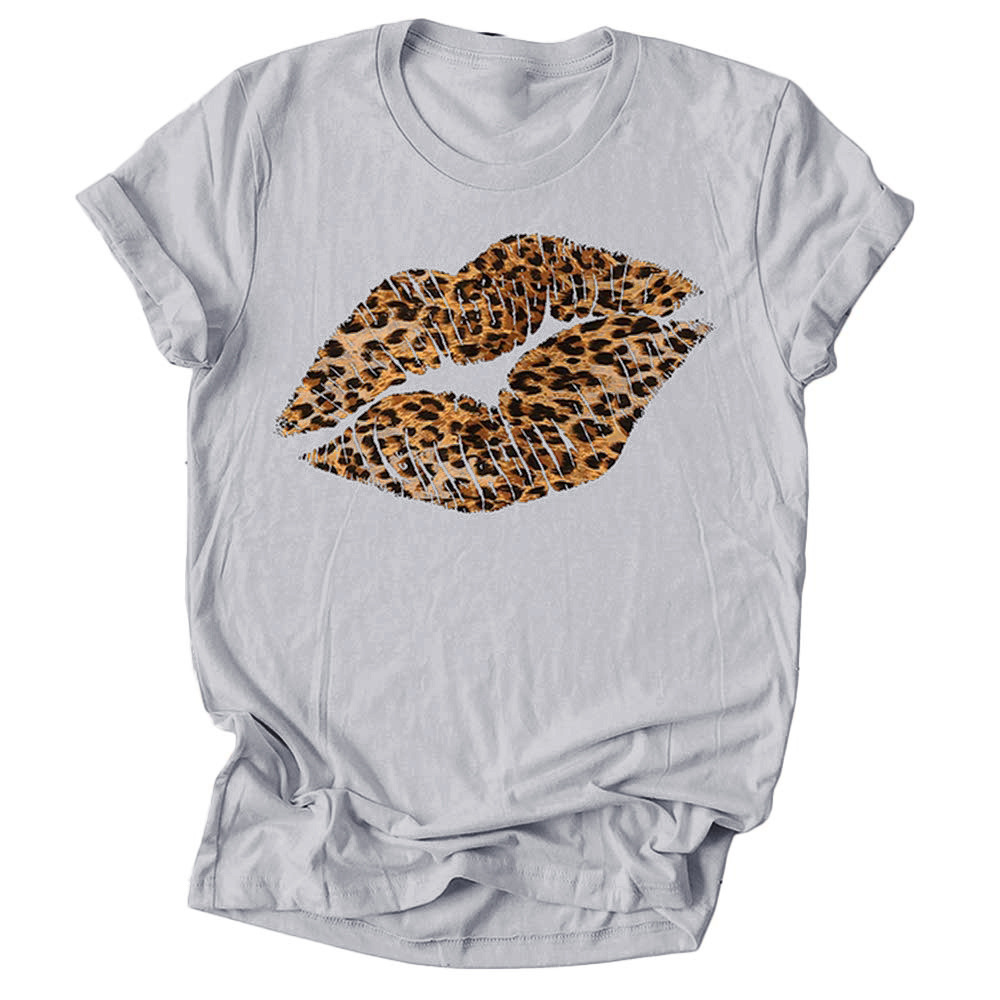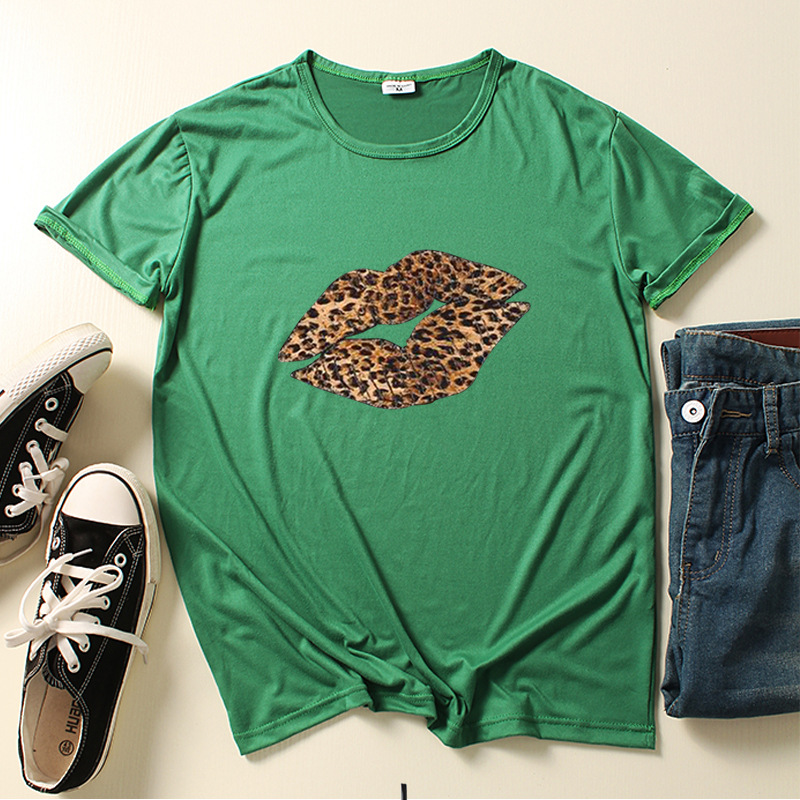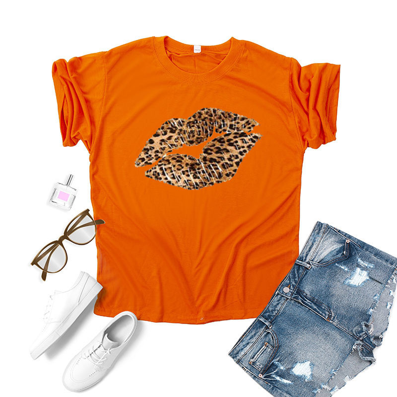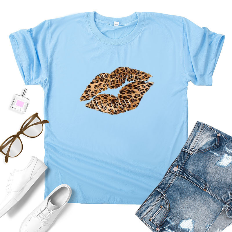 Leopard Lip Print Women T Shirt Short Sleeve O Neck Loose Women Tshirt Ladies Fashion Tee Shirt Tops Clothes Camisetas Mujer