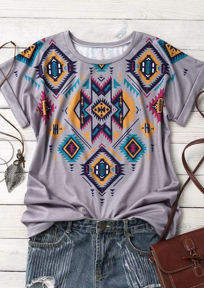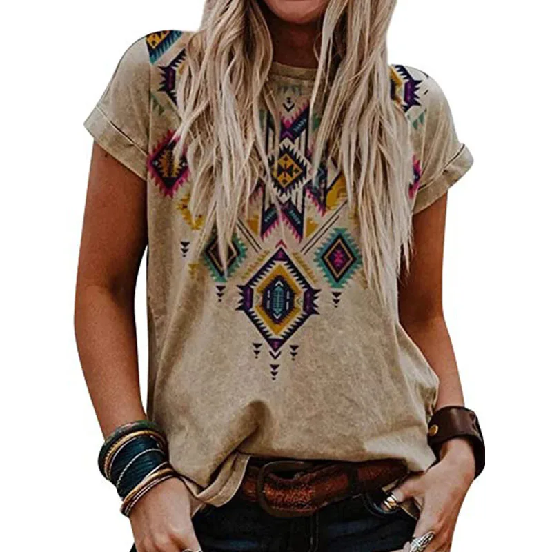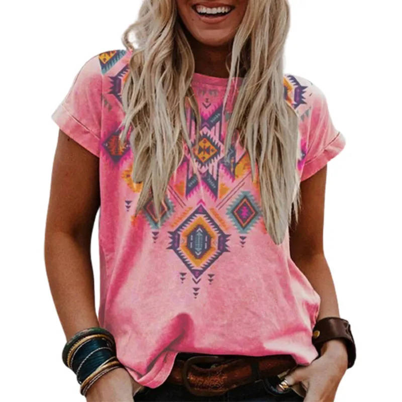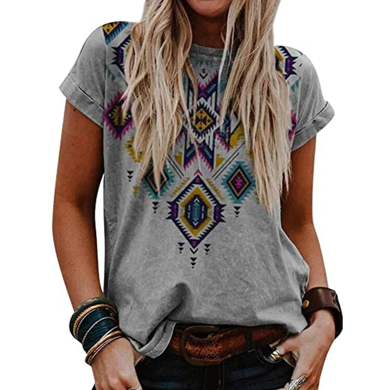 Plus Size Loose Tshirt Women's Summer Casual Print Shirt Round Neck Boho Tops Chemise Femme 5XL